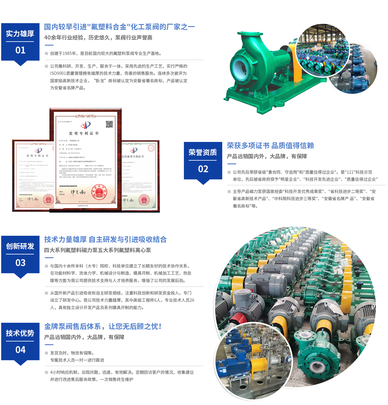 ??安徽臥龍泵閥股份有限公司前身涇縣氟塑料制品廠創(chuàng)建于1985年,是國內(nèi)較早引進(jìn)中科院上海有機化學(xué)研究所專利材料——"氟塑料合金",并以此耐腐蝕材料專業(yè)生產(chǎn)制造化工泵、閥、襯氟管道等產(chǎn)品的企業(yè)。公司經(jīng)過歷次的改制變革,2015年更名為安徽臥龍泵閥股份有限公司。